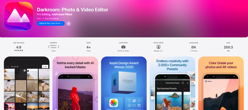 Darkroom is a powerful editor that quietly excels at film-style results. Its strength lies in tonal control and color grading rather than preset overload.