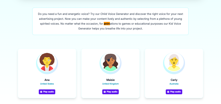 While it’s primarily used for business narration, you can easily adapt its voices for animation by tweaking speed and emotion levels.