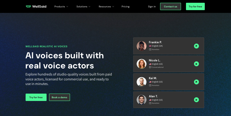 WellSaid Labs is praised for its ultra-realistic AI voices that mimic human intonation beautifully.
