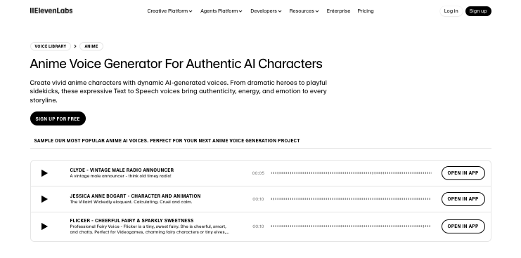 Their Character and Anime voice options make it a favorite among creators who need emotion-packed performances.