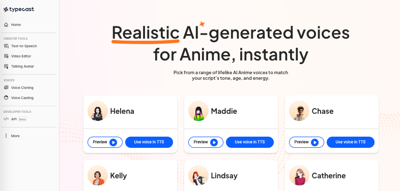Typecast.ai blends AI voice generation with virtual characters, offering an immersive way to bring your scripts to life.