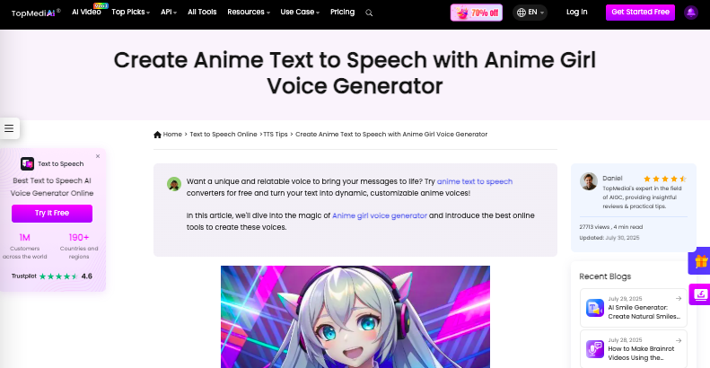 TopMediai, also known as VoxBox, is a favorite for users who want a huge library of character voices.