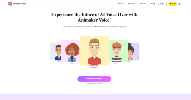 Animaker is ideal for beginners, thanks to its friendly interface and clear voice previews. It’s also web-based, so you can create anywhere without extra software.