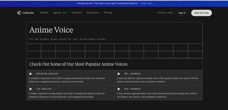 Cartesia caters directly to anime enthusiasts by offering authentic Japanese-style voice synthesis.