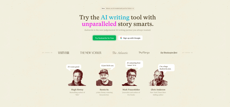 Sudowrite is a creative writing AI built for authors, screenwriters, and storytellers. It helps brainstorm ideas, expand descriptions, and rewrite passages in different styles. The tool can also suggest plot twists and character development paths. It’s designed to complement human creativity rather than replace it.