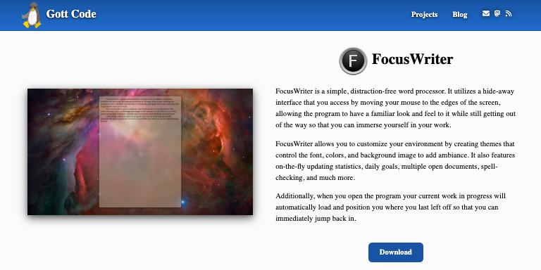 FocusWriter is another impressive distraction-free writing tool to consider. It incorporates a hide-away interface to ensure that nothing on the screen can grab your attention.
