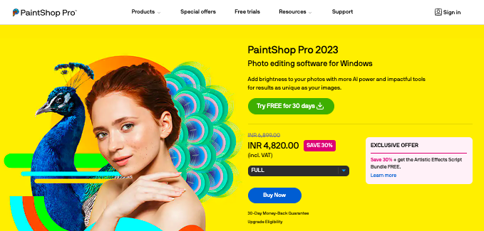 PaintShop Pro is another interesting vector and raster graphics editor to use in graphics design and photo editing. It has the most amazing tools, including the SmartClone feature.