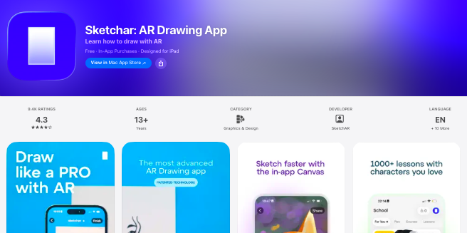 is a free drawing app for iPhone that you can use to draw or paint using Augmented Reality (AR). You can develop your creativity through unique AR drawing, gamification, and photo editing.