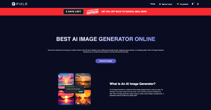Pixlr’s AI Image Generator offers a clean and straightforward way to produce images from text prompts while tying directly into its powerful photo editing ecosystem.