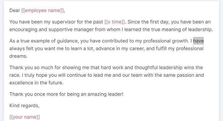 Only after highlighting some of the boss’ great deeds, does the sender go on to say how thankful they are for everything their boss has done and continues to do for them.