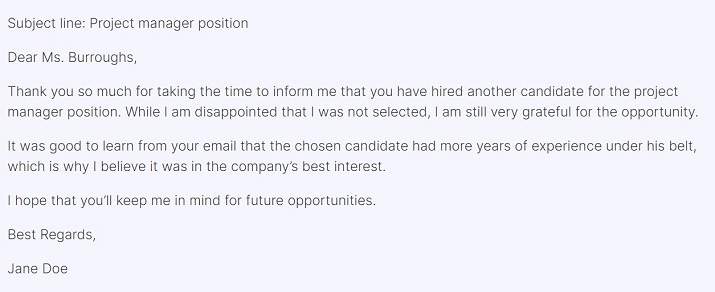11. Thank you email after a job rejection