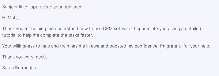 So when they offer you their help and support willingly, you should send an appreciation email to let them know you don’t take their assistance for granted. This gesture will not only brighten their day, it will also build up your work relationship.