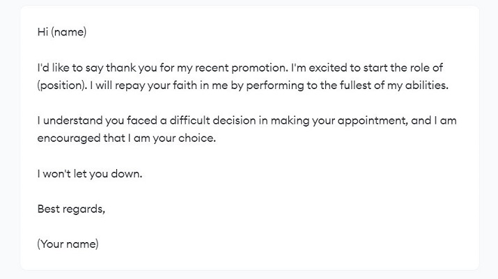 14. Thank you email following a job promotion