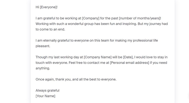 So don’t be tempted to burn bridges or just up and leave without saying a word because you’ve got a better offer somewhere. Take a cue from this template and craft a thank you email to your teammates and supervisors telling them how grateful you are to have worked with them.