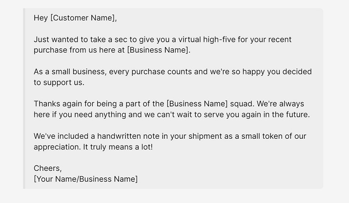 So if you’re running a business, consider sending a sweet and professional thank you email like the example above to let your customers know how much their purchase means to you.