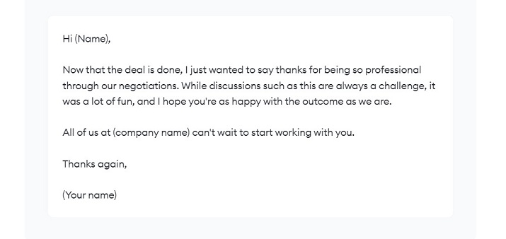 7. Thank you email after rounding up negotiations