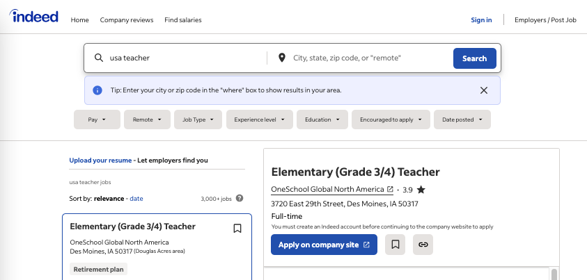What makes Indeed particularly powerful for educators is its sophisticated filtering system. You can narrow searches by contract type (full-time, part-time, substitute), set salary minimums, and even specify companies with stellar reviews.