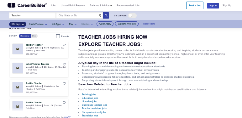 CareerBuilder’s strength is its diversity of opportunities, you’ll find everything from traditional classroom positions to educational technology roles and curriculum development positions.