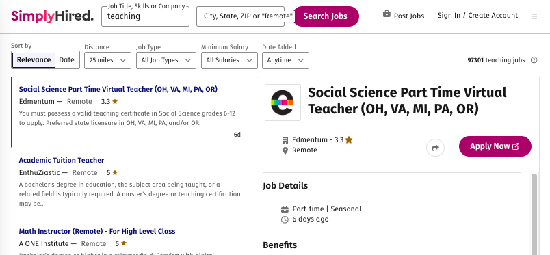 SimplyHired also partners with schools and districts to feature their openings, meaning some listings come with verified employer badges, adding a layer of legitimacy that’s reassuring in an era of job scams.