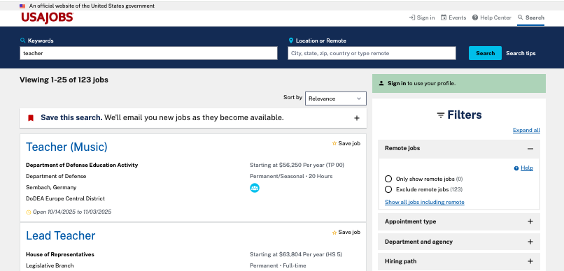 If you’re interested in teaching positions with the federal government, USAJOBS is your exclusive gateway.