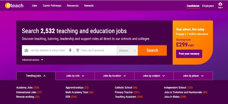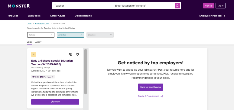 While it’s not education-specific, Monster’s massive employer network includes school districts, educational publishers, EdTech companies, and non-profit educational organizations looking for teaching talent.