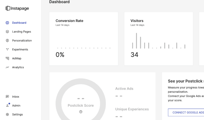 The Instapage dashboard is better and is what a user expects it to be. It is focused and clean and ads don’t take the screen real estate.