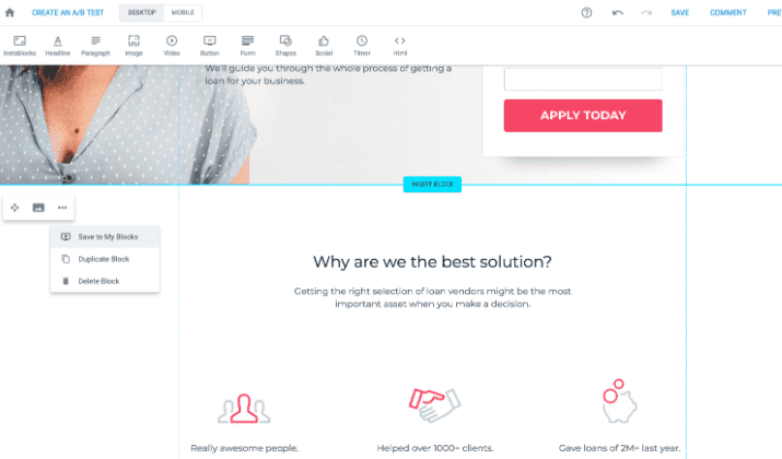 Their page builder is easy to use and fluid, but it isn’t as advanced as that of Instapage.