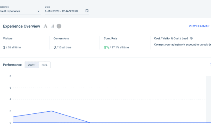 This is perhaps the reason their dashboard only provides limited data. Conversion rates, number of leads, page views, etc. can be viewed.