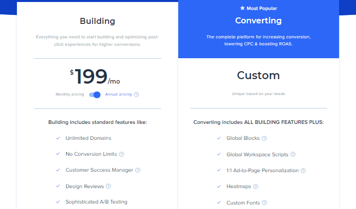 Instapage has only two pricing plans. This includes: