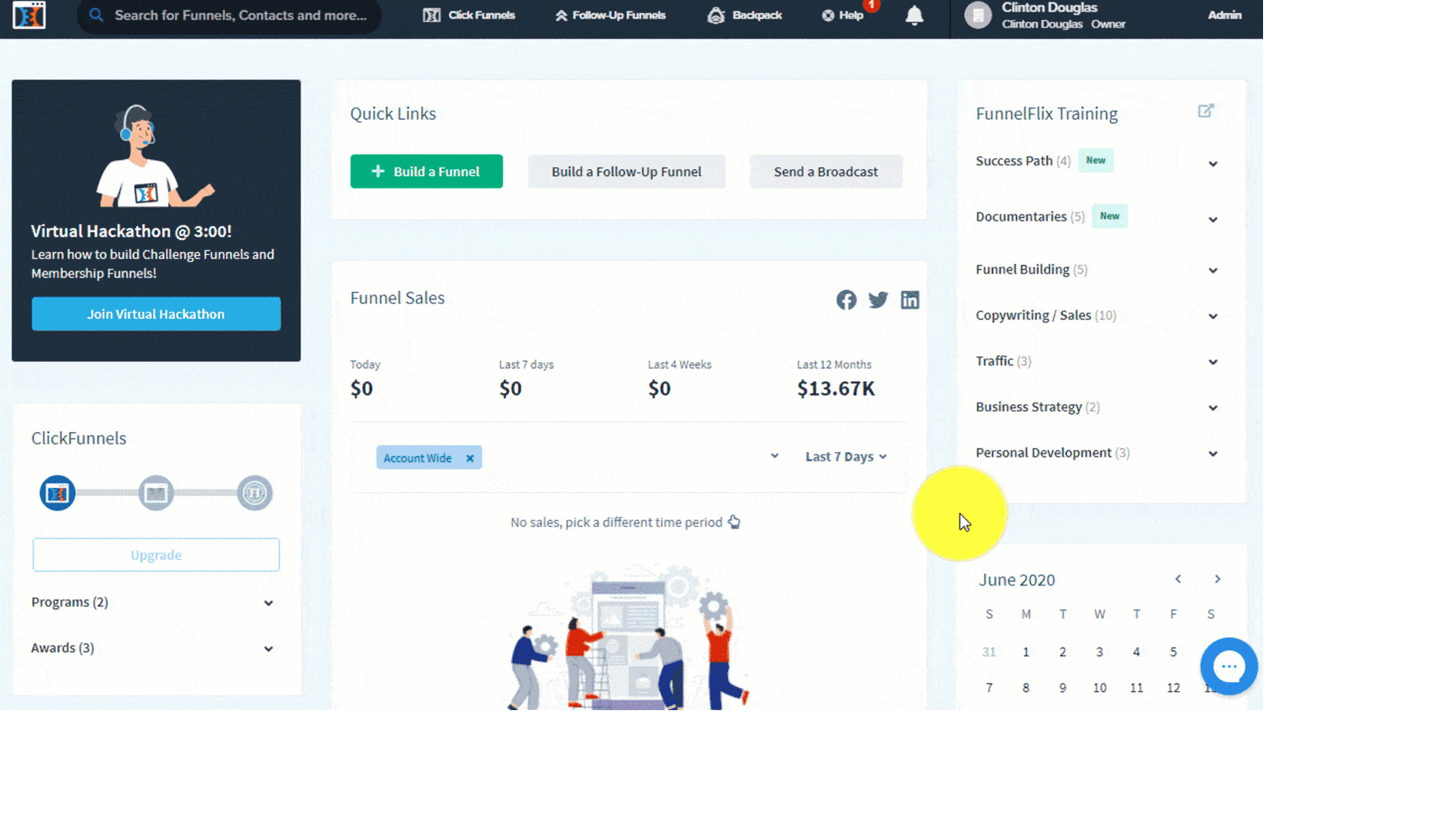 However, the main problem is that the dashboard of ClickFunnels isn’t crowded with functionality but rather stuffed with ads that take up a lot of the screen space.