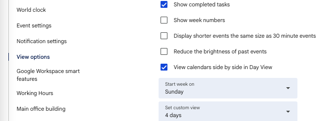 Not everyone needs to see 24 hours of the day on their calendar, especially if you’re not taking calls at 3 AM. Google Calendar lets you hide early and late hours for a cleaner, more focused view.
