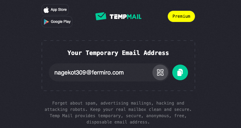 You visit the website or open the app, and it gives you a ready-to-use email address that’s valid for a short period.