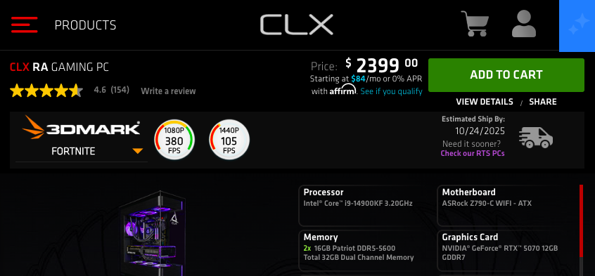 The CLX Ra is a high-performance custom gaming PC built by CLX, a U.S.-based company specializing in custom gaming systems.