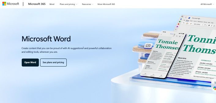MS Word comes as part of the Microsoft 365 Suite. It offers a free trial as well as premium plans.