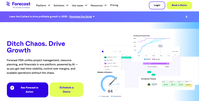 Forecast is a full suite business application software for businesses that offer professional services. It helps in resource planning and finetuning of finances and operations using project automation.