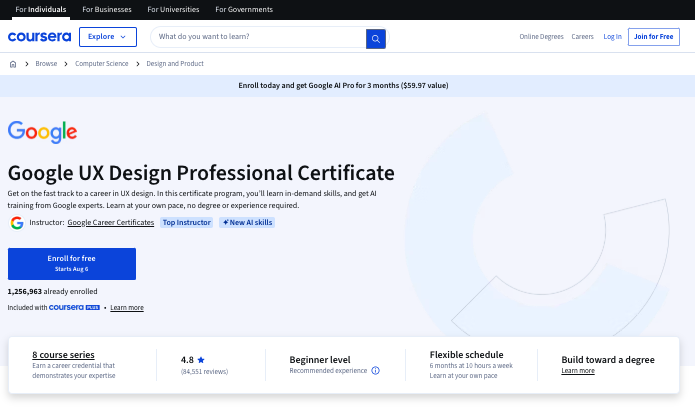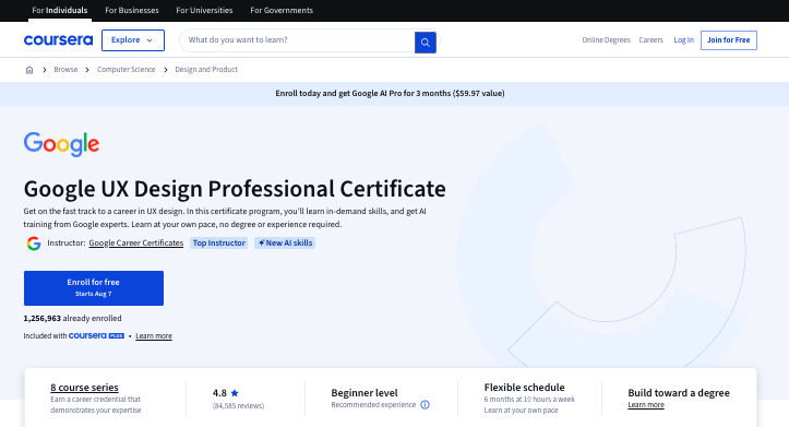 This free course is ideal for curious beginners who want to explore digital product design without a large time or money commitment. It provides an overview of design thinking, user empathy, and basic wireframing skills.