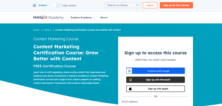 5. HubSpot Content Marketing Certification (HubSpot Academy)