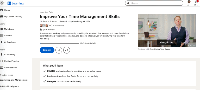 Cost: Free with LinkedIn Learning trial or ~$39.99/month subscription