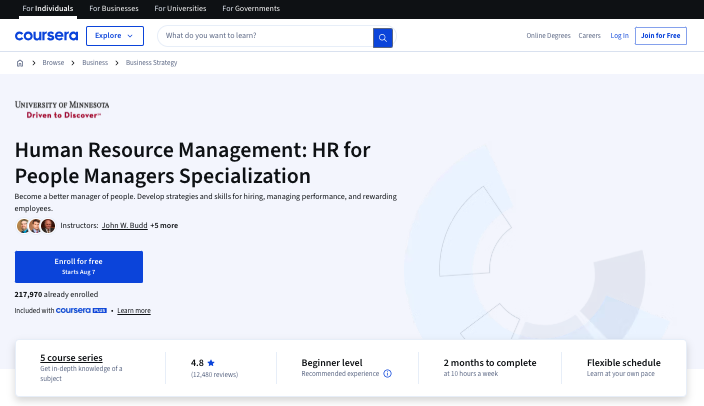 7. Coursera Certificate in Human Resource Management (University of Minnesota)