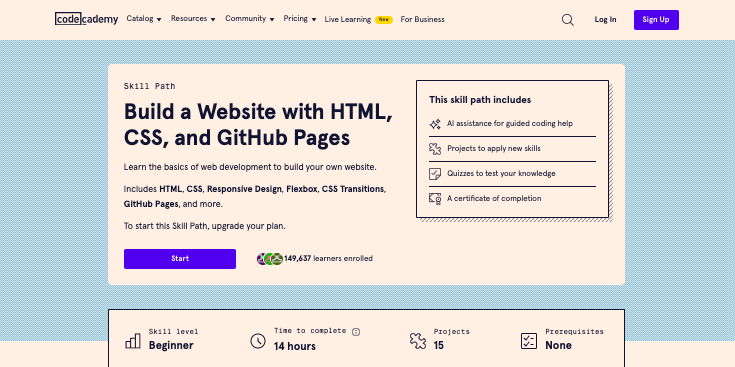This program helps you learn HTML, and CSS through interactive lessons and real coding projects. If you’ve ever wanted to build websites or explore a tech career, this course is a strong and flexible starting point.