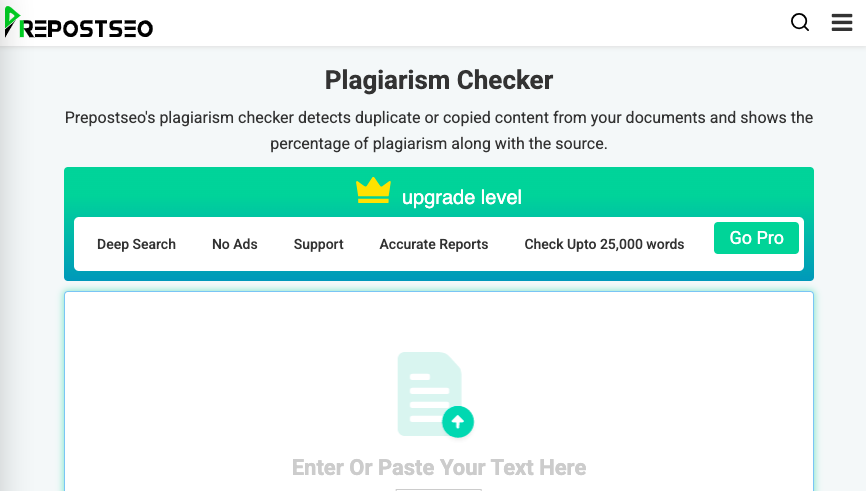 Prepostseo offers a free plagiarism detection service that’s both accurate and easy to use. The tool accurately checks plagiarism and displays results with percentage, making it a reliable free online tool to detect duplicate content. You can subscribe to the pro plan to access additional tools.